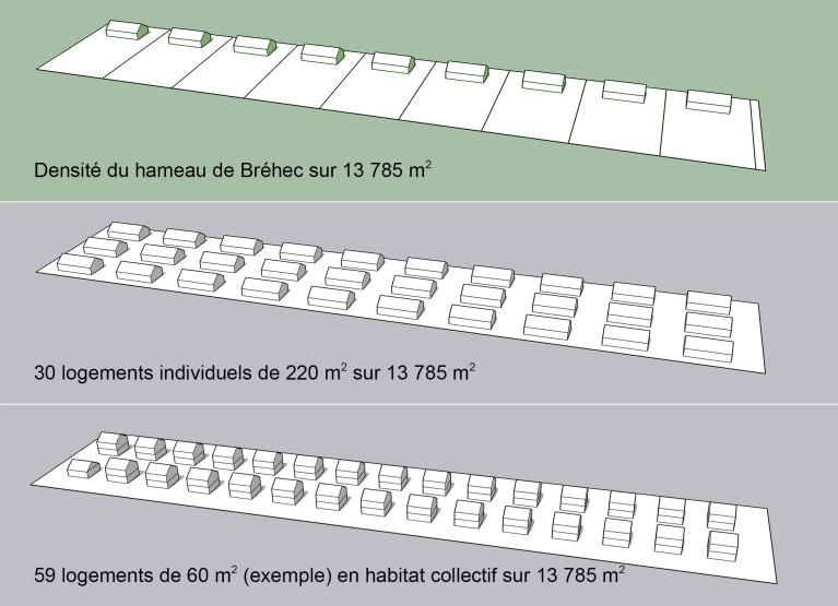 La densité actuelle du Vieux Bréhec, mesurée sur les sites d'urbanisme en ligne,